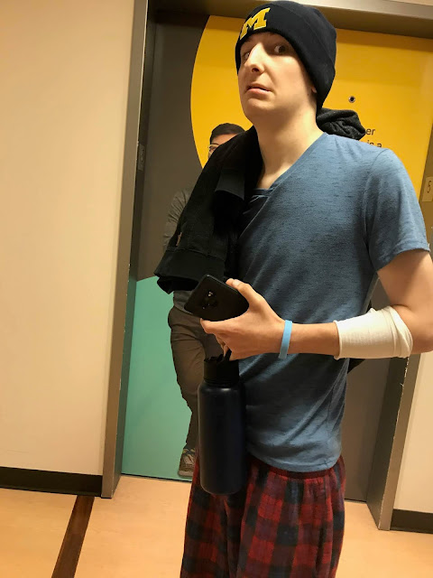 Back at home, our other injured friend was milking it for all it was worth. "All I can do is watch TV, mom." "My shoulder hurts." "I need some medicine." He is SO going to milk this. We have a visit with the pediatric surgeon scheduled for Friday.